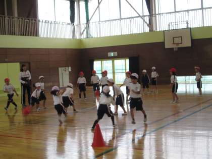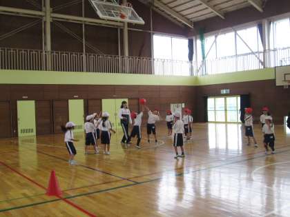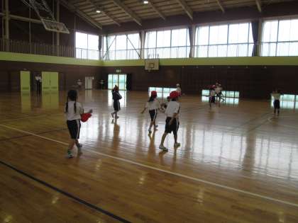 今日の体育は,ドッチボールです。準備体操として,体育館の中でタッチ鬼のゲームをして体を温めてからドッチボールをしました。