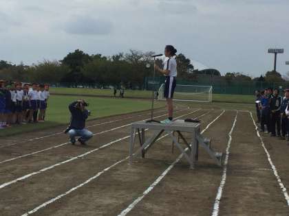閉会式では、高井小の児童が言いました。最後に、全員で集合写真を撮りました。1日、みんな頑張りました。