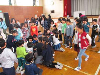 交流では,○×クイズやロンドン橋落ちたのゲームを行いました。