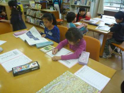 今日は,1年生全員で「本は ともだち」の学習をしました。図書室で,たくさんの本と触れ合い,自分が読んでみたい本を探し,夢中で読書に励んでいました。この学習を通して,読書に興味を持ち,今までよりも楽しんで本を読んでもらいたいです。