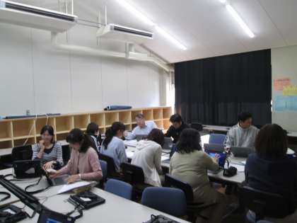 今日は,台風21号の影響で臨時休校になりました。学校では,児童不在のため,教職員は,平成30年度の学習指導要領の改訂に向けて職員研修として「プログラミング教育」の研修を行いました。
