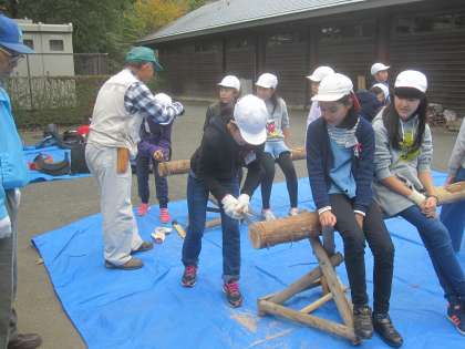5年生 森林・林業体験学習 その2 公開日 2017/10/24 更新日 2017/10/24 5年生の様子 10月24日(火) 博物館の外にある植物を見ながら説明を聞きました。竹炭の実験をしたり、丸太切りをしたり、貴重な体験をしました。
