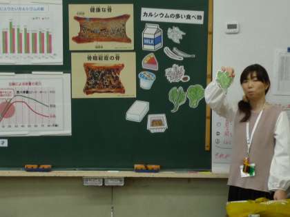 本日の4校時に,食育指導として永山小学校の鈴木先生をお招きして,カルシウムについて学習しました。