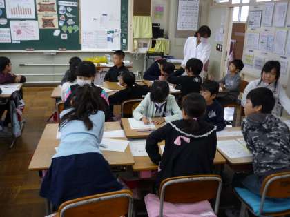 4年生は1日に約200ミリグラムのカルシウムが必要であり,カルシウムを貯蓄できる年齢が10歳から20歳という話を聞いて,児童は「じゃあ後10年しかない!」と驚いていました。