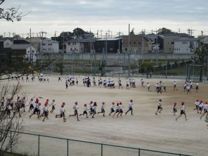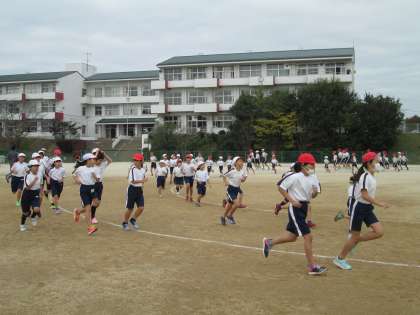 11月22日(水)に行われる持久走記録会に向けて,業間休みに7分間走を行っています。