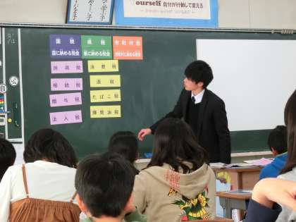 12/14 6年 租税教室 開催 公開日 2017/12/14 更新日 2017/12/14 6年生の様子 12/14(木) 龍ヶ崎税務署の方に来ていただいて,税金について学びました。 消費税のせいで,お金を多く払わなければならない,計算が面倒…など,あまりいいイメージがなかった税金ですが,その使われ方や役割を知り,大切な事が分かりました。 最後は1億円の札束(模造品)を持たせてもらい,その重みにびっくりしました。