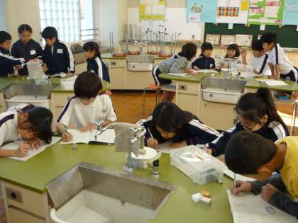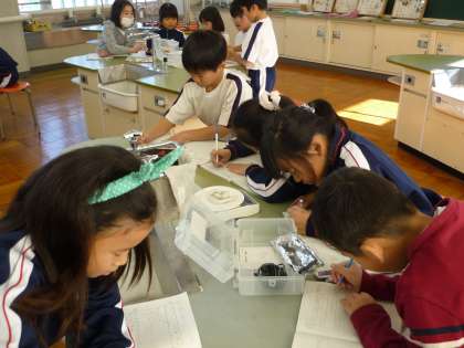 理科「物の重さを調べよう」の学習を行いました。「ものは形を変えたら重さは変わるのだろうか」「同じ体積でもものの種類が変わると重さは変わるのだろうか」という2つの実験を行いました。3年生になって,初めて理科室での実験ということで,みんな張り切って実験を行っていました。