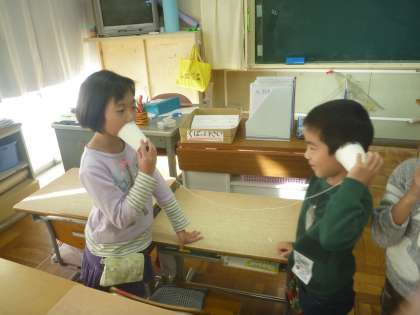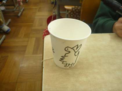 身近にある材料でおもちゃ作りをしました。糸電話とかいじゅうスピーカを作り,楽しく遊べました。糸電話の糸がピンとしていないと声が聞こえないことにも気がつくことができました。