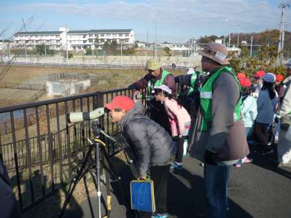 総合的な学習の一環で,ゆめみ野公園に野鳥観察に行きました。「環境NPOとりで」や「とりで鳥の会」12名の方に来ていただき,野鳥の観察を行いました。今回は11種類の鳥を観察することができ,子供たちも望遠鏡をのぞきながら熱心に観察を行っていました。池の付近では,カワセミを見ることもでき,色鮮やかな姿に子供たちも感激していました。もうすぐ冬休みになりますので,今度はぜひ家族で野鳥観察に訪れてはいかがでしょうか。