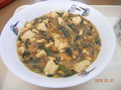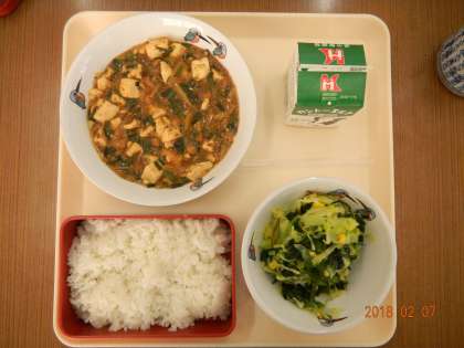 今日の献立は,ごはん マーボーどうふ かいそうサラダ でした。
