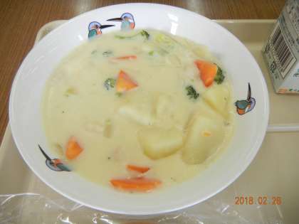 クリームシチューはとりにくベースの優しい味で,ジャガイモとにんじん,ブロッコリーが,よい味を出していました。
