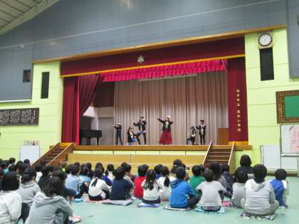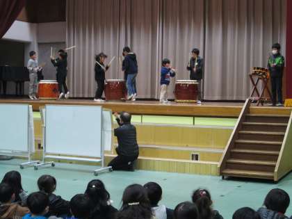 今日は,ロング昼休み(13:10〜13:45)を活用して,音楽を楽しむ会を体育館で行いました。つくし・たんぽぽの和太鼓や歌うまコンテスト入賞者3組,ダンスクラブ(2チーム)の創作ダンスの発表を行いました。