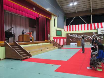 6年生は,卒業式に向けて体育館で練習を行っています。今日は,卒業証書の受け取り方の練習を行いました。