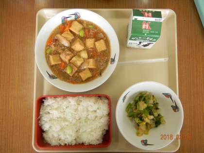 今日の献立は,ごはん,生揚げのそぼろあんかけ,おかかあえ でした。
