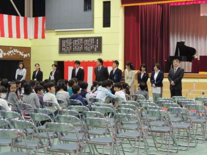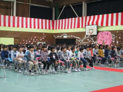 式辞のあとに担任発表を行いました。子供たちは,どきどきしながら担任発表を聞きました。