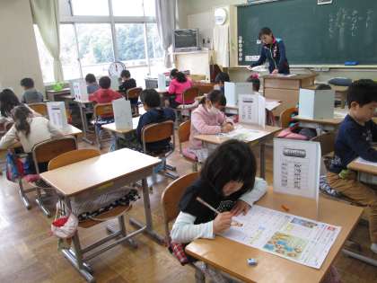 算数の学習では,「せいりのしかた」について学習をしています。今日は,単元テストを行いました。学校で学習した内容がどのくらい理解できているかを確かめ,理解できていない部分は,再度学校で学習を行います。ご家庭でも,児童がどこの部分でつまずいているかを把握し,家庭で練習をさせていただくと,確かな学力の定着につながりますので,ご協力をお願いいたします。