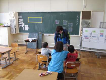 つくし・ひまわり学級では,個に応じた学習を行っています。多くの友達がいると落ち着かなくなってしまったり,集中できなくなってしまったりする児童には,個別指導を行うことで学力の定着が身に付くように指導しています。
