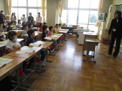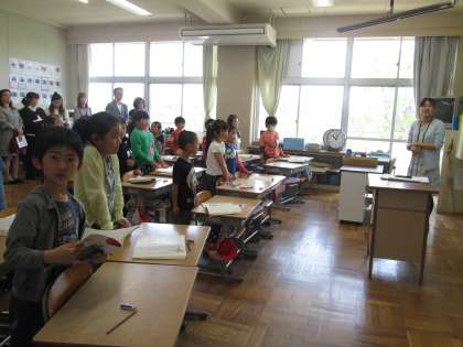 2年生の授業参観は,国語です。「風のゆうびんやさん」の音読発表を行いました。