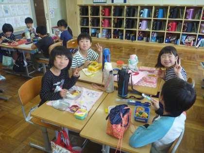 今日は授業参観のため,お弁当を食べました。子供たちは昨日からお弁当を楽しみにしており,みんなにこにこでお弁当を食べていました。「全部食べたよ!」と嬉しそうでした。