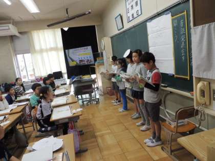 4年生は授業参観で,「こわれた千の楽器」の音読発表会を行いました。