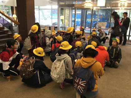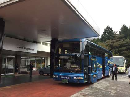 食事の後、退館式を行いました。自分の荷物を片付け、ホテル花月園を出発し、鎌倉へ向かっています。