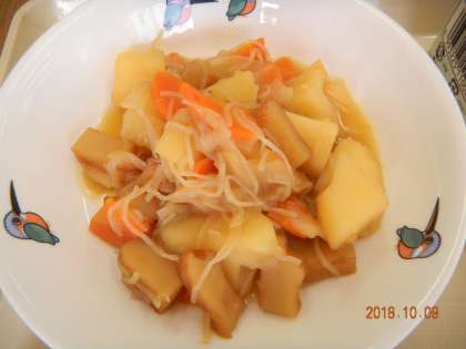ジャガイモのうま煮は,肉じゃがとはまたちょっとちがった味付けで,甘い味付けが印象的でした。大変おいしかったです。