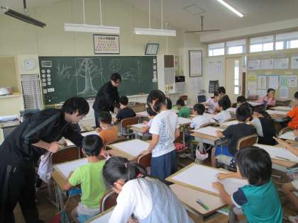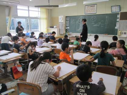 本日,東京芸術大学の方が絵画指導をしてくれました。子供たちは,楽しく絵画活動に取り組みました。