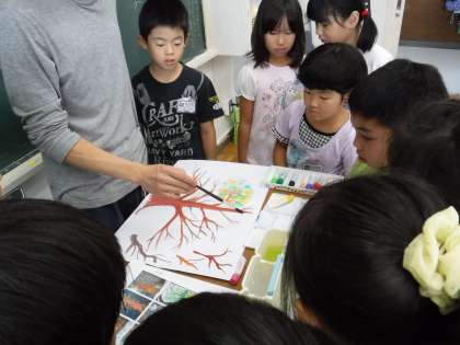 芸大交流事業で,木の描き方や灯りの表現のしかたの指導をしていただきました。自分がイメージする「モチモチの木」を表現するために,どんな色を使うのか,どんな絵の具の乗せ方をするのか,試行錯誤を繰り返しました。