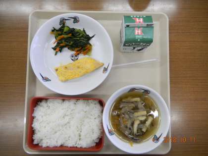 今日の献立は,ごはん,サケのモミジ焼き,コマツナのおひたし,さわにわん でした。