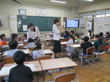 本日,取手市教育委員会による計画訪問が行われ,2名の指導主事の先生が授業の様子を参観しました。