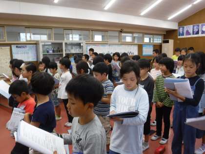 3年生全体でどんぐりっこ祭りの群読の練習を行いました。本番で日頃の学習の成果をお見せできるように,力を合わせて頑張ります。今回が初めての練習となるので,今後も練習風景をアップしていく予定です。