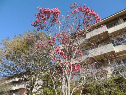 校舎のまわりを見渡すと、いろんな花がたくさん咲いています。