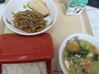 今日の献立は,チキンクリームスパゲティ,豆とツナのサラダ でした。