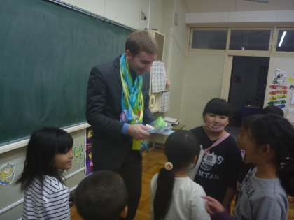 本日は,ブレンダン先生との最後の授業でした。数字を使ったゲームや,身近な文具のカルタで楽しみながら活動できました。