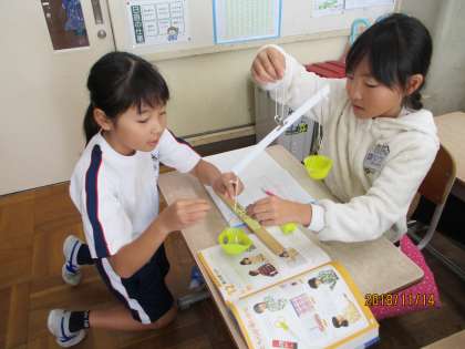 3年生 重さを比べよう 公開日 2018/11/14 更新日 2018/11/14 3年生の様子 11月14日(水) 算数で重さの学習に入りました。今日は、重さを比べる方法を考えました。単位にしたい重さのいくつ分で比べられることを知り、1グラムの1円玉のいくつ分を使って重さを比べました。