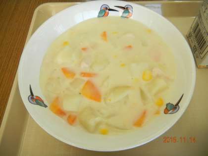 クリームシチューは,ジャガイモ,ニンジン,タマネギ,スィートコーンなど野菜がたくさん入っていて,大変ボリュームがあり大変満足でした。バターが濃くを出しており大変おいしかったです。
