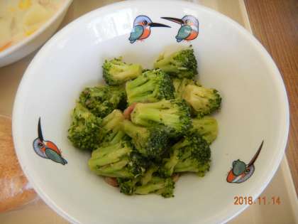 リクエストメニュー定番のブロッコリーのガーリックソテーは,子供たちにも大変人気です。ワインとしょう油とニンニクをふんだんに使っており,大変味わい深いものになっています。