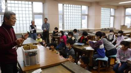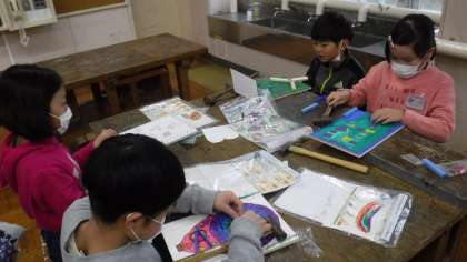 図工の時間に環境NPOとりでの方に協力していただき,金槌でくぎを打ちました。前もって絵を描いておいた板にくぎを打ち,ゲームの制作です。初めての経験でなかなかうまくいきませんでしたが,アドバイスをもらいながら真剣に取り組めました。