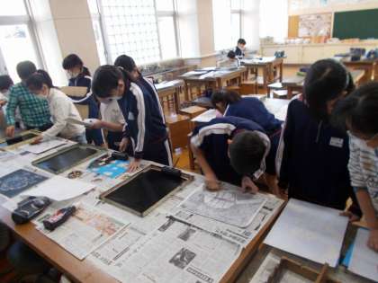 しっかりとインクを付けて,バレンで一生懸命印刷紙に馴染ませていました。