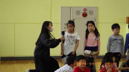 今日は,2時間目に1年生を迎える会が行われました。1年生が一人一人しっかりと自己紹介をした後,計画委員会を中心に楽しいゲームを行いました。「猛獣狩りに行こう」では,下級生を優しくリードし,グループ作りをする姿が見られました。