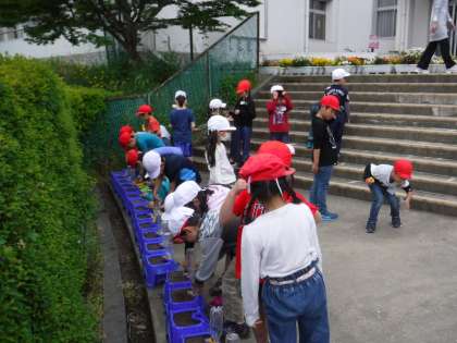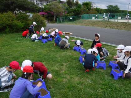 今日は生活科で野菜の種をまきました。自分の育てたい野菜を選び,種をよく見てから植木鉢に植えます。たっぷり水をあげ,みんなで成長を楽しみにしている様子が見られました。