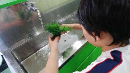 今日のお昼休みは,ロング昼休みです。子供たちは,ずっと気にしていた水槽の大掃除を行いました。高井小の6年生は,単学級のため,毎年自分たちが育てていた魚と一緒に進級します。大きな水槽のため洗うのは大変ですが,子供たちが,分業して手慣れた様子で掃除する姿には,感心しました。「先生,カルキ抜きがないと,大変だから絶対に買ってきてください。」と催促されました。一緒に何年間も生活している魚たちは,子供たちにとって家族のようなもののようです。生き物の世話をすることで,命の大切さをしっかりと学ばせていきたいと思います。