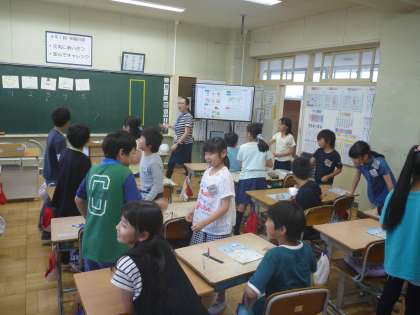 外国語活動を行いました。今回は,天気の答え方について学習しました。「晴れ,雨,曇…」とゲームを取り入れながら,楽しく活動しました。