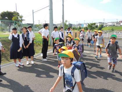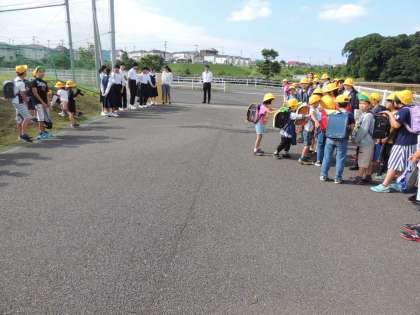 朝,小中連携で取り組んでいる挨拶運動を行いました。永山中学生が高井小に来校し,一緒に並んで「おはよう」の声かけをし,気持ちよいスタートで一日が始まりました。