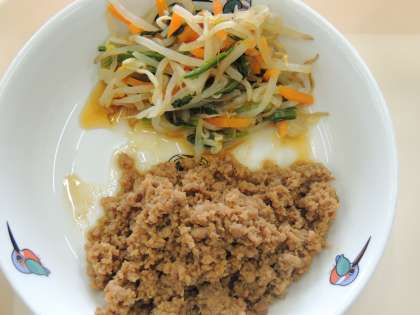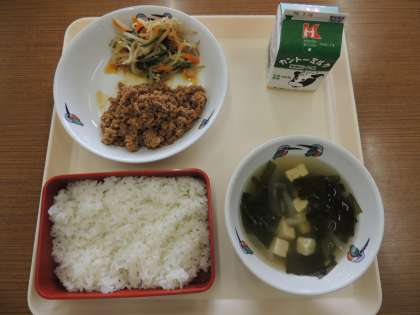今日の献立は,ごはん,牛乳,ビビンバ,にらと豆腐のスープ です。