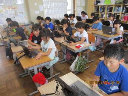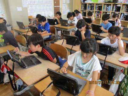 今日はタブレットを使って1学期の復習をしました。eネットライブラリを使ってみました。家庭ですすめている子もいますが、初めてという子もいて、やり方を覚えてから一斉に取り組みました。全問正解だ! 2分で終わったよ!と熱心に取り組んでいました。