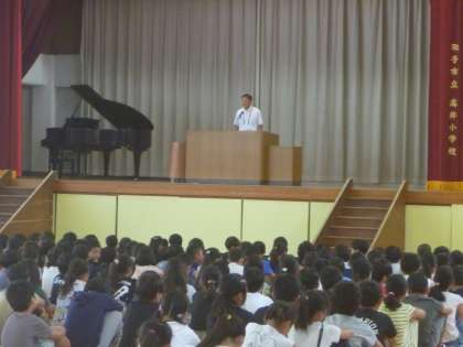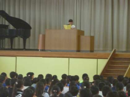 夏休みも終わり,2学期の始業式が行われました。どの学年もきちんとした態度で参加することができました。始業式では4年生が代表で,2学期の抱負を発表しました。とても立派に発表することができました。