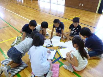 生活科では町探検に向けての話合いをしています。1組と2組で質問の分担を決めたり,どんな順番で質問をするのか相談をしたり,真剣に活動することができました。