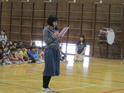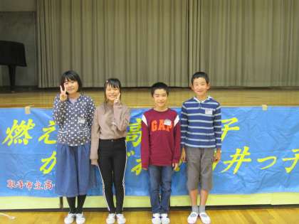陸上記録会壮行会を、中心となって頑張ってくれた計画委員の5年生です。明日は、6年生も頑張ってくれると思います。5年生の皆さん、ありがとう!