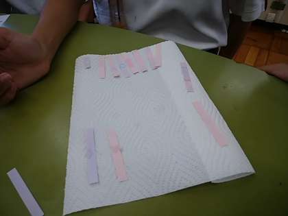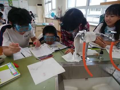 今日はリトマス紙を使って,身近な水よう液の性質を調べました。色が変わる不思議な紙に興味をもって実験に取り組んでいました。